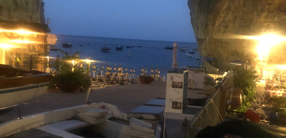 We made our way to a beach side restaurant known as the La Cambusa(check out my review on Tripadvisor) which afforded us unhindered view of the beach away from the crowds.I had the Nastra Azzuro which is an expensive beer with lesser alcohol content than its partner Perroni the other most popular brand in Italy. I had a baked chicken Italian style and Malati had an aubergine salad. It is only outside India that the Aubergine gets culinary respect as a main course dish delight !It is also not a great idea to have chicken in Italy when one has so many seafood options.After a lazy and leisurely lunch we strolled around the market with its local handicrafts and headed to the jetty . Chinese products have made their appearance her as well