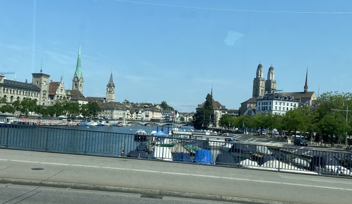 We had just one and a half days in Zurich before heading to the more idyllic spots of Switzerland. Our own short list comprised of a visit to the churches – Fraumunster, Grossmunster and the Peter’s church and a walk around the old city of Zurich. Stroll down the Bahnofstrasse with some high street shopping leading on to Burliplatz pier. A boat cruise on the lake to the Lindt factory at Kilchberg. A meal at one of the sidewalk cafes on the Bahnoffstrasse and a visit to the the COOP store at Annahof. Two museums of the four – The national museum (Landesmuseum), the FIFA museum and the Art Gallery Kuntsthaus and the clock museum on Bahnoffstrasse. Ride on Zurich’s excellent tram network to get a feel of the town albeit through a tram window. And wind up the day with a stroll along the clear waters of the Limmat. This pretty much makes a fairly packed schedule for a full day. Notable omissions to the list are the Uetliberg mountain and the Rhine falls some distance away from the town .