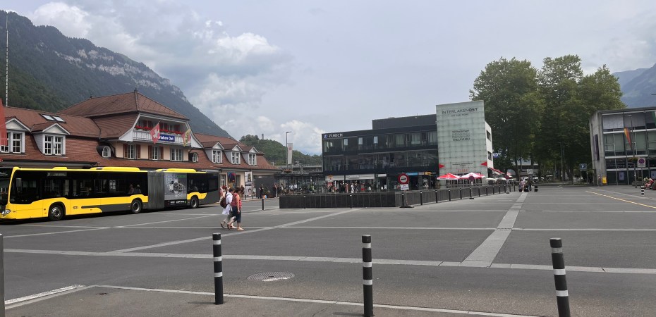 We took the direct train from Zurich main to Interlaken via Bern as the shortest distance via Luzern required a change of train. The last bit of the journey from Thun to Interlaken is along the shores of Lake Thun and presents a gorgeous view of the surrounding hills and the lake before crossing the Aar river just before entering Interlaken Ost station. Do sit on the left side of the train for best views and photos.