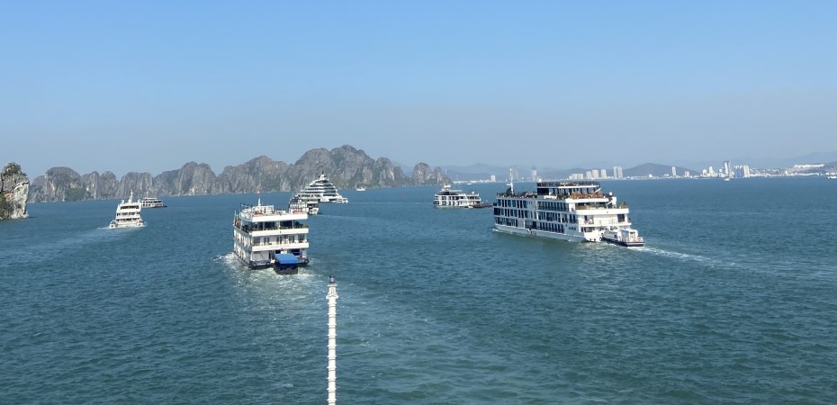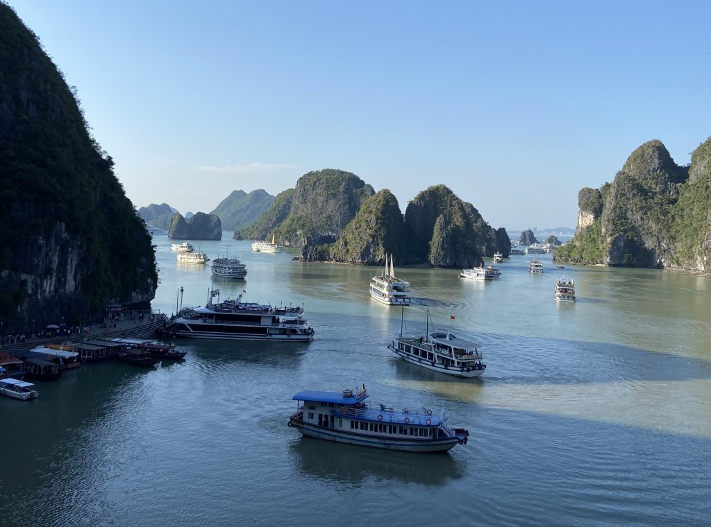 Most tourist literature says that Halong Bay in Vietnam is a UNESCO World Heritage Site, thus adding to its appeal as a “must-see” destination. After exploring the UNESCO website, I found that the Halong Bay – Cat Ba archipelago qualified because of its stunning natural beauty and a notable example of karst terrain shaped by the sea”. (Karst terrain consists of limestone weathered by sea water). In Halong Bay this takes the shape of nearly 2000 mountainous islands rising from the sea of which only half have been named so far.