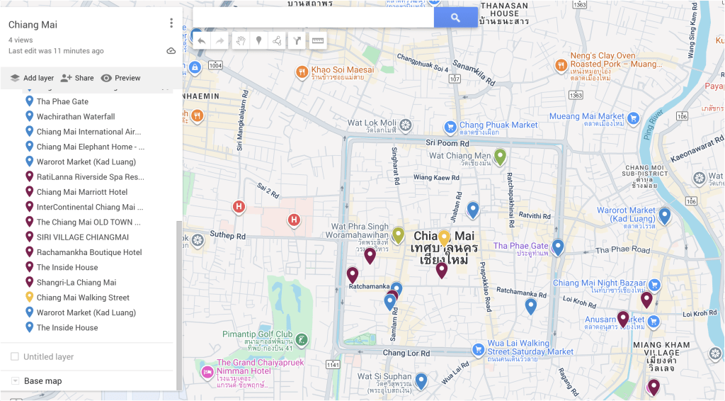 Chiang Mai was founded in the 13th century as the capital of the Lana dynasty and is the gateway to the Northern Highlands. It is located on the banks of the Ping River which is the main tributary of the Chao Praya river ( which also flows through Bangkok. More about it later). The core city referred to as the “Old Town” comprises of a square 1.6×1.6 km enclosed by a wall and a moat. While the moat remains, much of the wall has been destroyed and one can only see some remnants of this wall. The city extends beyond this in all directions and is in many ways a modern city .