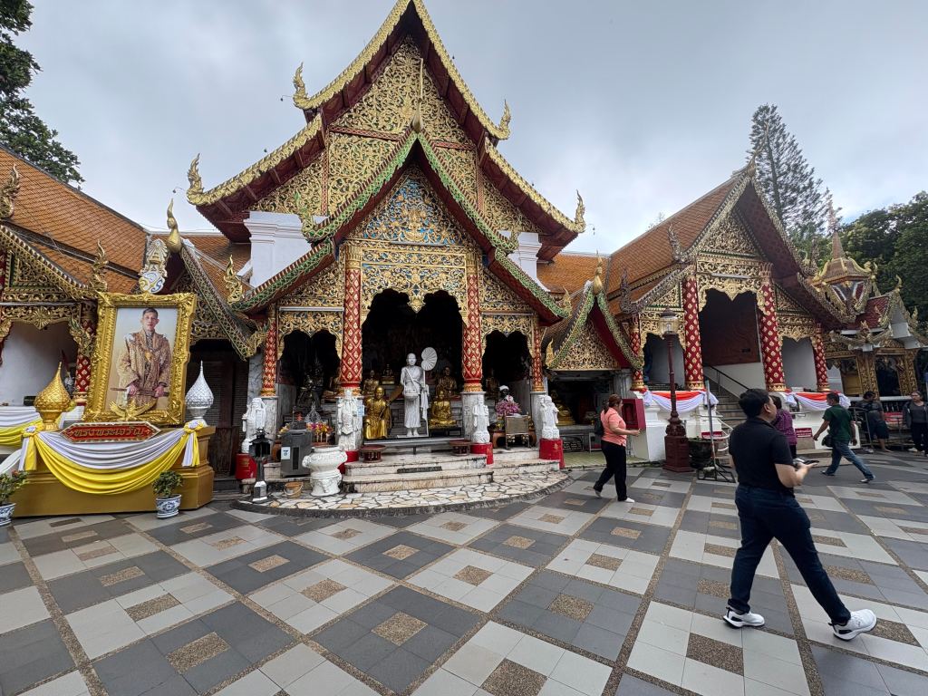Once you get off the cable car at the top of the mountain, walk through the magnificent entrance into the inner sanctorum of the temple. The gold covered Chedi or stupa is said to house the relic of the lord Buddha.There are numerous statues, figures and worship spots located within. I would suggest you identify each of these on the map ( available behind the 30 Baht entrance ticket). Also spend some time translating some of the inscriptions in Thai to get some idea of the Buddhist philosophy. Google Translate was of great help and we spent a lot of time absorbing the import of the teachings and significance of the statues. A walk round the temple took us almost and hour. Besides we caught some great views of the city from the designated view points.