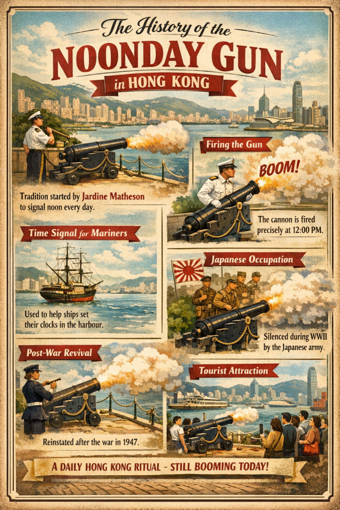 On my recent trip to Hong Kong, I discovered an interesting and lesser-known site – the Noon-Day Gun at Causeway Bay. This gun is fired every day at noon and on New Year’s eve and has a fascinating history. Established around the 1860s, it was originally intended to announce the arrival of the Tai-pan of Jardine Matheson, one of the largest companies in Hong Kong. “Tai-pan” roughly translates to “top boss” and refers to senior foreign business executives in China, particularly heads of British trading houses in the 19th and early 20th centuries. The first Tai-pan was William Jardine, an enterprising Scotsman and the largest opium smuggler of his time. He sourced opium from India and shipped it to China. Initially licensed by the East India Company, Jardine quickly built a huge market of opium addicts thus significantly increasing his wealth and power. His influence was so strong that when the Chinese tried to stop this illegal trade, he played a key role in starting the First Opium War,(1841) which led to the ceding of Hong Kong Island to the British. Later, Kowloon and the Northern Territories were added, remaining under British control until 1997 when Hong Kong was handed back to China.